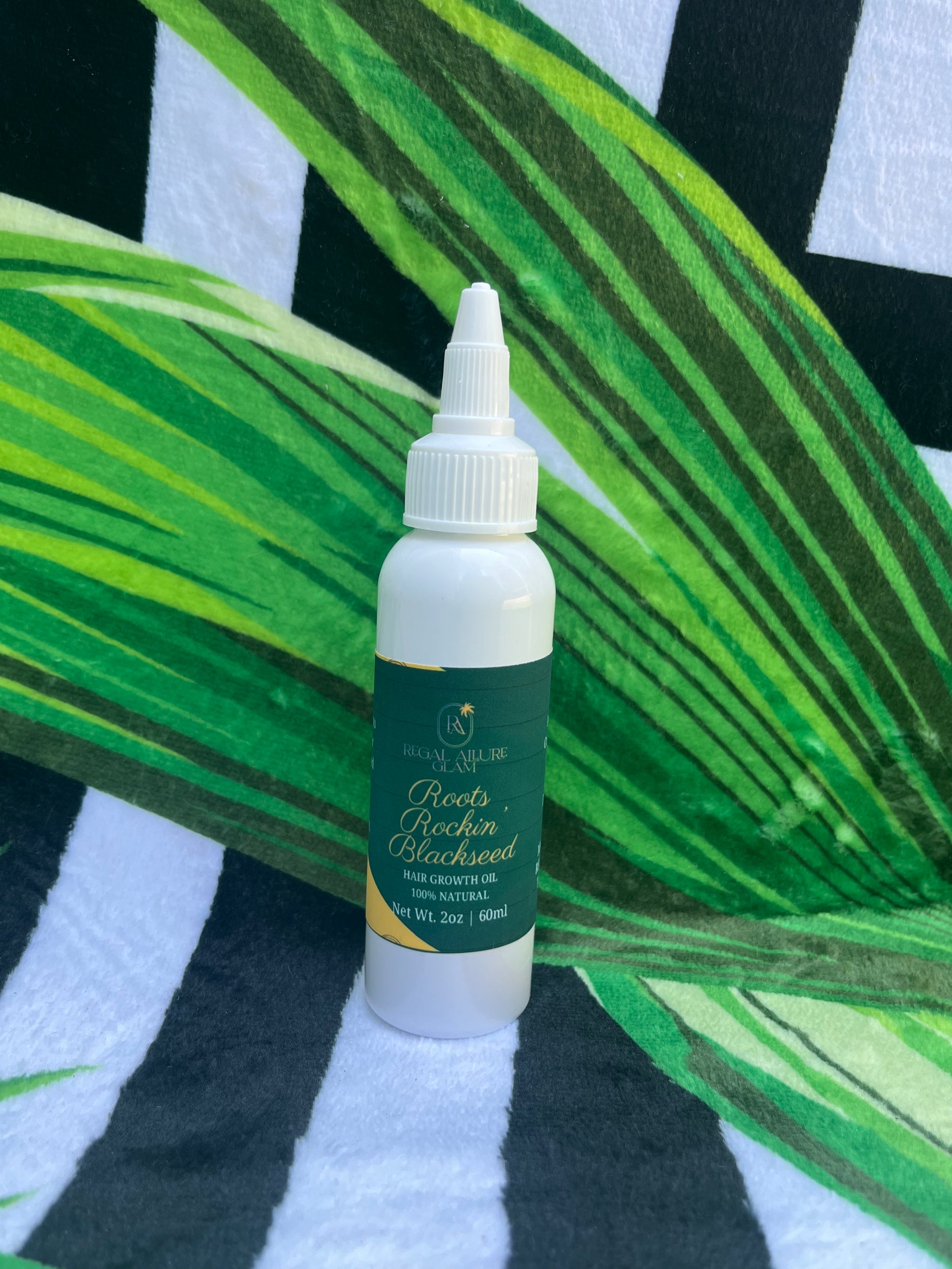 Unlock your hair's growth potential with Roots Rockin' Blackseed Growth Oil - a powerful, natural hair growth serum formulated with premium black seed oil to nourish your scalp and promote healthy hair growth.