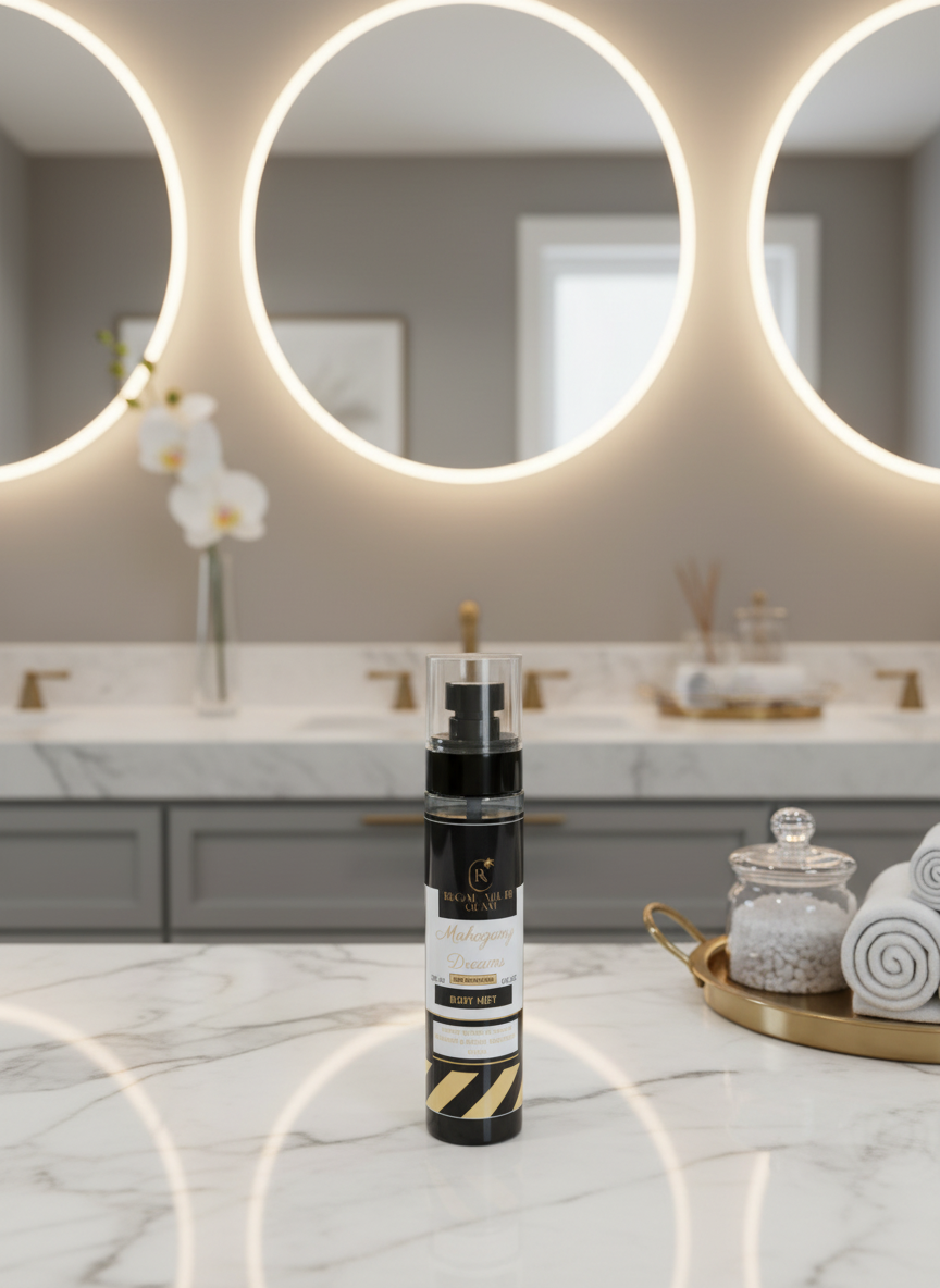 Dream in rich sophistication with Mahogany Dreams Body Mist - a luxurious fragrance spray that captures the warm, woody essence of rich mahogany with sophisticated, masculine appeal.