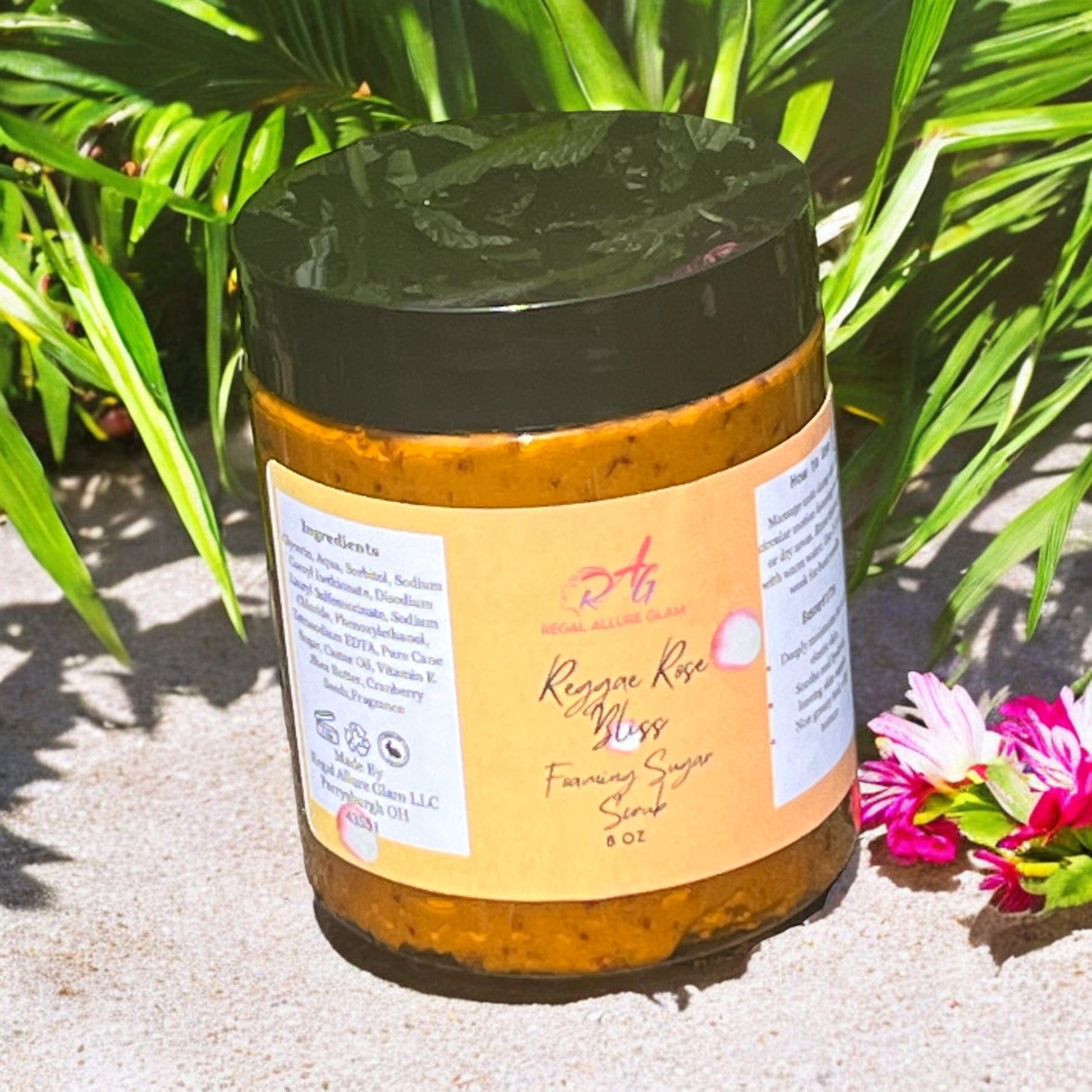 Indulge your senses and rejuvenate your skin with our Reggae Rose Bliss Foaming Sugar Scrub. This luxurious scrub combines the essence of a tropical rose garden with the gentle exfoliation of pure cane sugar and cranberry seeds, leaving your skin silky smooth and glowing. Rich shea butter, castor oil, and vitamin E provide deep hydration and nourishment, ensuring your skin stays soft and supple. The gentle foaming action enhances the cleansing experience, washing away impurities while pampering your skin with the invigorating scent of passionfruit and roses.