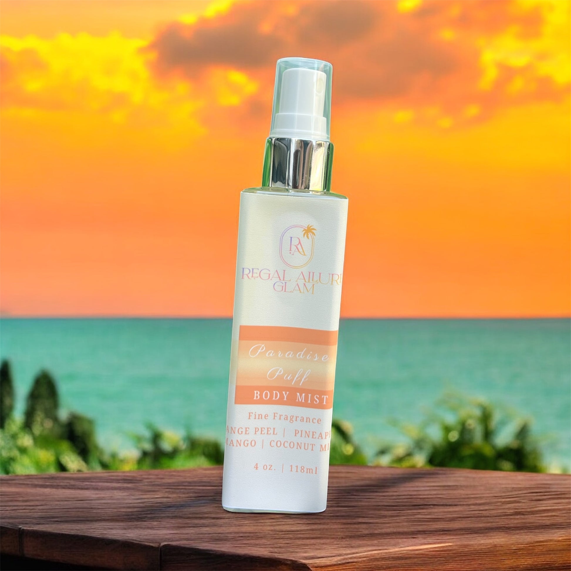 Escape to tropical paradise with Paradise Puff Body Mist - a vibrant fragrance spray that captures the essence of a breathtaking tropical sunset with every delightful spritz.