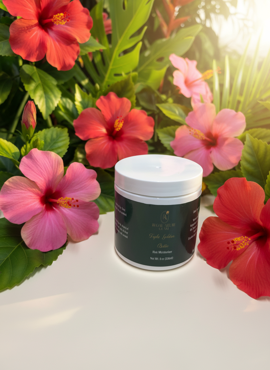Apply a small amount of Triple Golden Butta Hair Moisturizer to damp or dry hair. Focus on the ends and work your way up, then style as desired. Perfect for daily hydration, detangling, or as a leave-in treatment.